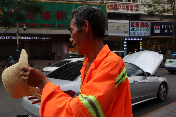 環(huán)衛(wèi)工人韓師傅接受了記者采訪時(shí)表示,天氣炎熱對他的工作有一定影響,但公司和自己都做了一定的防暑措施,自己也戴了大檐帽,套上防曬套袖,他也提醒大家,炎炎夏日多喝水,保護(hù)好自己。環(huán)衛(wèi)工人劉師傅則向記者表示,雖然單位準(zhǔn)備了飲用水補(bǔ)給點(diǎn),但今天暫時(shí)沒有找到,希望單位內(nèi)部能夠加強(qiáng)聯(lián)系和調(diào)動(dòng),及時(shí)讓環(huán)衛(wèi)工人補(bǔ)充到水分。