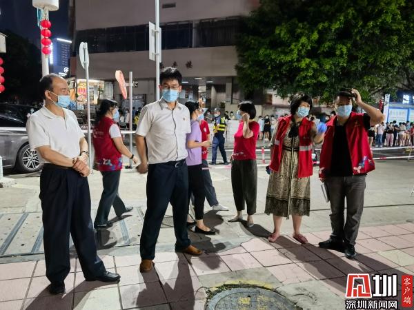 見圳客戶端·深圳新聞網(wǎng)2021年5月27日訊(記者 劉晨 通訊員 魏官明 陳惠冰)5月21日以來,深圳鹽田區(qū)、龍崗區(qū)相繼排查發(fā)現(xiàn)新冠肺炎無癥狀感染者,為堅決遏制疫情擴散蔓延,全力守護人民群眾的生命健康安全。羅湖區(qū)東湖街道按照市委市政府、區(qū)委區(qū)政府的統(tǒng)一部署,結(jié)合疫情防控形勢新變化,快速反應(yīng)、周密部署,5月26日下午,火速整合各部門、各社區(qū)近400名工作人員組成6支防疫突擊隊伍,街道黨工委書記程時菊,黨工委副書記劉慧堅、謝統(tǒng)敏、沈文俊,黨工委委員方海峰,二級調(diào)研員張翠紅分別擔任6支隊伍的督導(dǎo)長,連夜帶領(lǐng)突擊隊員們奔赴各相關(guān)社區(qū)開展核酸檢測工作。