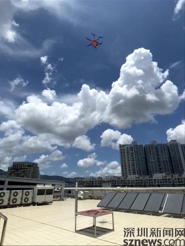 無(wú)人機(jī)降落在羅湖醫(yī)院集團(tuán)醫(yī)學(xué)檢驗(yàn)中心停機(jī)坪。