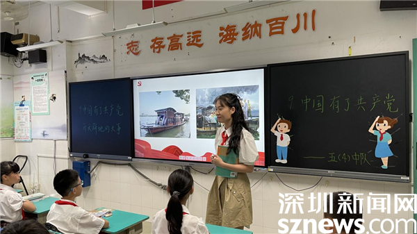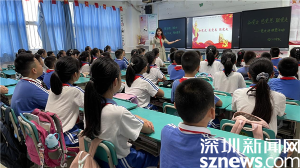 6月16日上午,記者走進深圳市螺嶺外國語實驗學校,教室里的老師正生動地講述中國共產黨的光輝歷程,通過一張張珍貴的歷史圖片、一段段刻骨銘心的歷史故事,引領同學們共同追尋紅色記憶、感懷革命精神。