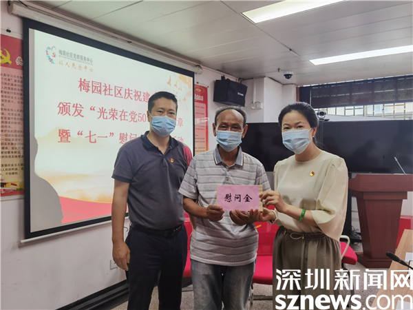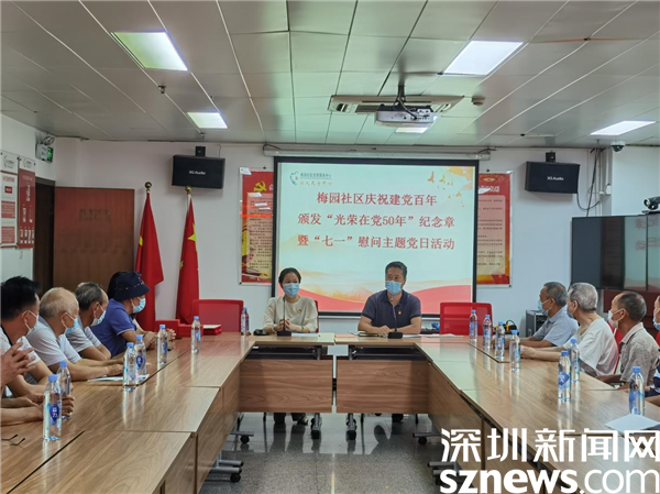 讀特客戶端·深圳新聞網(wǎng)2021年6月30日訊(記者 郭含笑 通訊員 陳秋珊 紀楚苗)為進一步加強和體現(xiàn)黨組織對黨員的關心與愛護,在中國共產(chǎn)黨百年華誕來臨之際,6月30日下午,深圳市羅湖區(qū)清水河街道梅園社區(qū)黨委在黨群服務中心二樓會議室舉行慶祝建黨百年頒發(fā)“光榮在黨50年”紀念章暨“七一”慰問主題黨日活動。