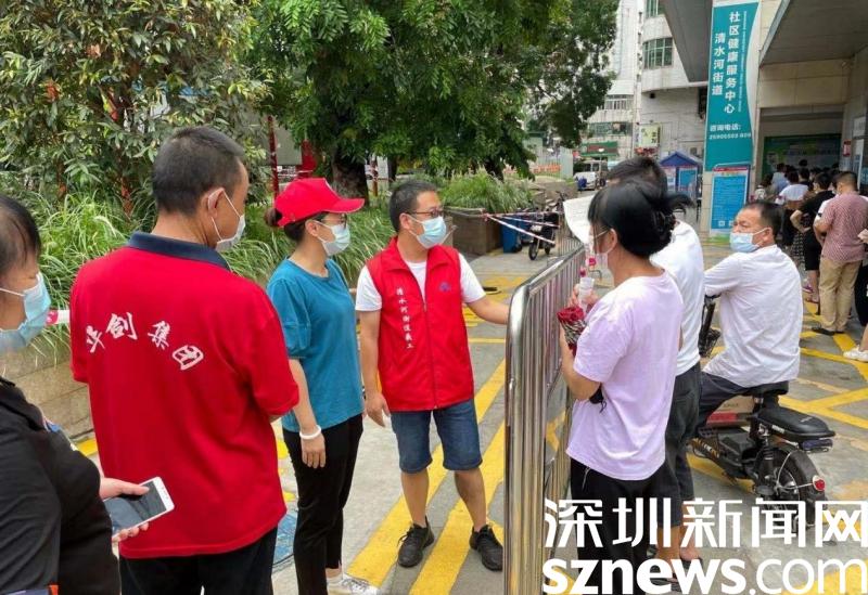 據(jù)了解,在本次疫情防控期間,羅湖區(qū)委下沉干部主要負(fù)責(zé)坭崗社區(qū)合圍各個(gè)卡口,他們每天忙于測溫、查驗(yàn)行程軌跡、查驗(yàn)健康碼、出入車輛管理、回應(yīng)居民咨詢,為坭崗社區(qū)筑造一條堅(jiān)實(shí)的防線。除此之外,來自深圳報(bào)業(yè)集團(tuán)的工作隊(duì)也堅(jiān)守在清水河街道社康。他們通過耐心地指引居民截取行程碼、健康碼,來維護(hù)現(xiàn)場秩序,引導(dǎo)居民接種疫苗。從早上7點(diǎn)到晚上10點(diǎn),甚至是12點(diǎn),他們都和社區(qū)工作者一樣,堅(jiān)守在疫情防控的第一道防線,為社區(qū)疫苗接種推進(jìn)工作提供了極大的幫助。這些下沉干部和工作隊(duì)也得到社康工作人員和周邊居民的點(diǎn)贊,清水河街道社康主任感嘆說:“下沉干部和工作隊(duì)的帥哥們真是給力?。 ?/p>