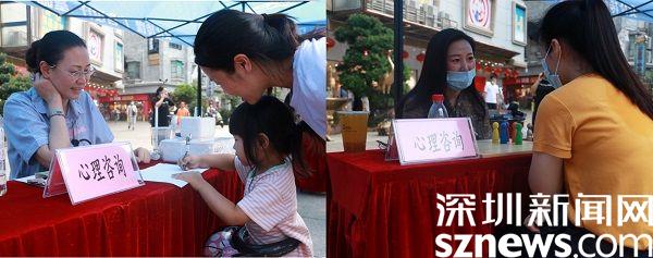 活動當天,“心靈援助驛站”的兩名心理老師也來到現(xiàn)場,用專業(yè)、輕松的心理疏導方式為群眾答疑解惑,引導群眾以樂觀、積極向上的心態(tài)面對生活。其中,唐玲老師的家庭格盤治療法(一盤顏色各異的“小人偶”)吸引了不少市民圍觀。