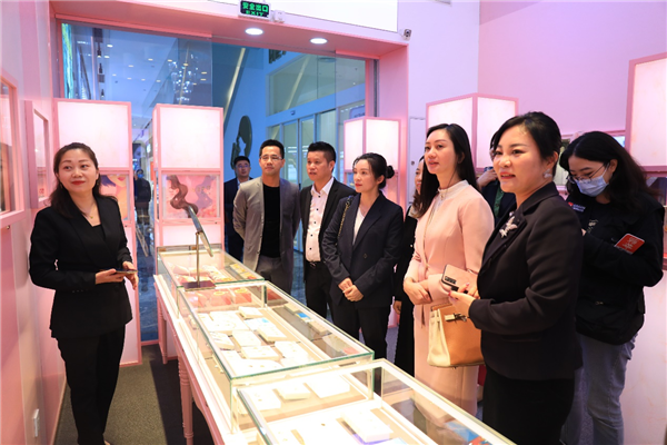 本次活動中,人大代表們還走進商場品牌門店、網(wǎng)紅店與消費者互動。代表們走進周大生珠寶參股品牌大生美門店,被為大生美設計的星座極光大師系列作品所吸引目光。在翠綠門店,代表們對金箔制成的千里江山圖贊不絕口?!敖鸩谱鞒蓴?shù)米長的畫,這個工藝實在是高。”代表們在一旁感嘆道。