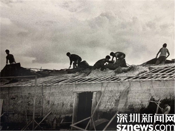 竹葉棚 1982 年部隊營房臺風過后重拾家園。攝影/周順斌