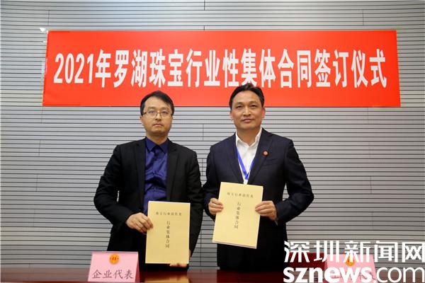 值得一提的是,本次大會還融合了職工權(quán)益保障、文明城市創(chuàng)建、企業(yè)服務(wù)等內(nèi)容。在大會現(xiàn)場,舉行了“2021年羅湖區(qū)珠寶行業(yè)集體合同簽訂儀式”。簽訂儀式上,區(qū)珠寶工聯(lián)會主席、集體協(xié)商首席代表曾志斌和羅湖區(qū)珠寶企業(yè)協(xié)商首席代表周曉航共同簽訂了《2021年羅湖區(qū)珠寶行業(yè)集體合同》,切實(shí)保障了轄區(qū)珠寶企業(yè)職工合法權(quán)益;隨后,由“廣東省五一勞動獎?wù)隆鲍@得者郭夷錟宣讀了主題為《攜手新征程,共創(chuàng)新未來》的行業(yè)倡議書,號召全區(qū)珠寶企業(yè)和職工,在深入學(xué)習(xí)貫徹習(xí)近平新時代中國特色社會主義思想、愛崗敬業(yè)、敢為人先、誠信經(jīng)營等方面爭做表率;同時,為更好地服務(wù)轄區(qū)企業(yè),大會特地邀請了羅湖區(qū)企業(yè)服務(wù)中心陳良同志為與會代表介紹企業(yè)服務(wù)平臺建設(shè)與運(yùn)用情況。