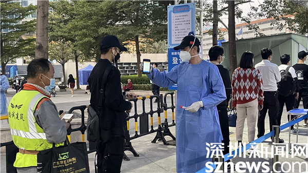 讀特客戶端·深圳新聞網(wǎng)2022年1月9日訊(記者 郭含笑)“從早上9點到晚上12點半一直在筍崗街道初心公園核酸檢測點協(xié)助工作,回到家之后在沙發(fā)上就睡著了......”筍崗街道北站社區(qū)志愿服務隊隊長孫世福說道。2022年1月7日,深圳報告2例新冠病毒陽性感染者,其中一名感染者在羅湖工作。面對突如其來的疫情,羅湖各街道、各社區(qū)迅速開展新一輪核酸檢測。1月8日下午,深圳新聞網(wǎng)記者實地走訪翠竹、筍崗街道等多個核酸檢測點,深入了解核酸檢測現(xiàn)場的情況。