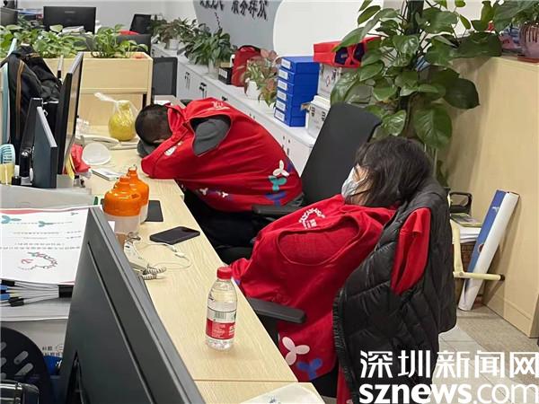 桂園街道疫情防控志愿者1月10日晚上工作到凌晨5點多做數(shù)據核查,在辦公室的椅子上睡著了。