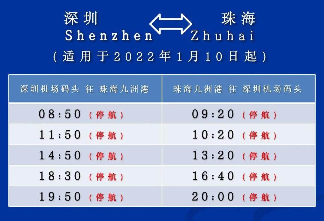 記者從深圳機場獲悉,1月10日起,深圳機場碼頭至珠海九洲港航線船班全部停航,復(fù)航時間另行通知。