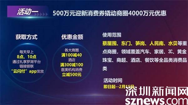 為了讓大家買得舒心、花得開心,新春之際羅湖再次狂灑500萬消費券,并聯(lián)合各大商家商圈開展優(yōu)惠活動。