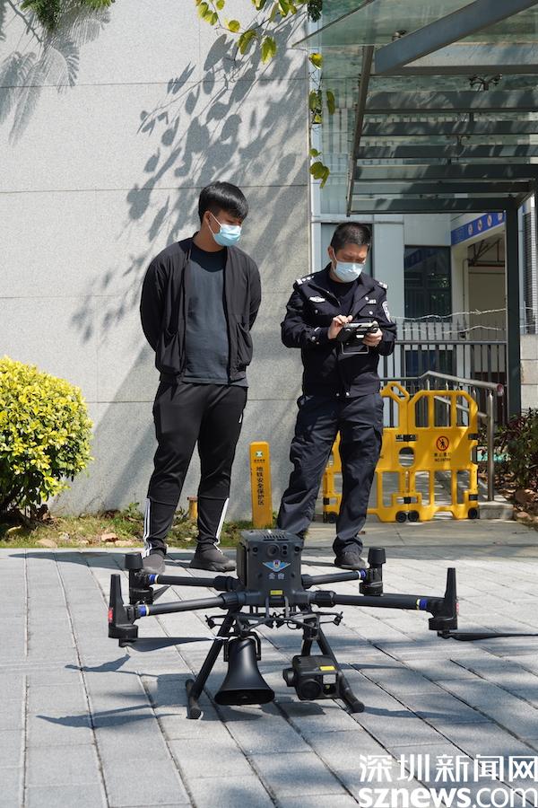 “為了您和家人的健康,所有在桂園街道轄區(qū)工作、生活的居民,從2月24日起連續(xù)4天實行全員核酸檢測,4天4檢。轄區(qū)內(nèi)所有物業(yè)小區(qū)、商業(yè)樓宇、市場等場所均設(shè)置卡口,人員進入需掃描“場所碼”……”中午,記者在桂園街道鹿苑小區(qū)外見到,民警與無人機飛手正操控著一款“神兵利器”,助陣疫情防控,空中喊話管控、防范區(qū)居民,快速傳遞最新防疫信息。