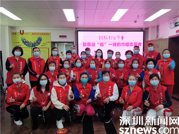 讀特客戶端·深圳新聞網(wǎng)2022年3月8日訊(記者 郭含笑 通訊員 張亮亮)自疫情防控阻擊戰(zhàn)打響以來,深圳市羅湖區(qū)清水河街道梅園社區(qū)“讓愛飛翔”志愿服務(wù)隊(duì)的巾幗志愿者們不懼辛苦,化身“藍(lán)精靈”日夜堅(jiān)守在社區(qū)疫情防控一線,為社區(qū)筑起了疫情防控的“最美防線”。在“三八”國際婦女節(jié)到來之際,梅園社區(qū)黨委、社區(qū)婦聯(lián)、深圳市東西方社工服務(wù)社駐梅園黨群服務(wù)中心開展抗疫巾幗志愿者慰問活動(dòng),為一直默默守護(hù)梅園社區(qū)的“紅色娘子軍”送去節(jié)日的問候和祝福。