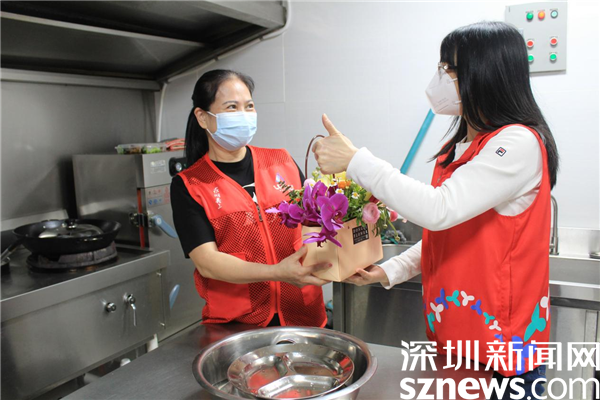 在社區(qū)廚房,老圍社區(qū)居民周文清正在忙碌,疫情開(kāi)始以來(lái),社區(qū)擔(dān)負(fù)著下沉人員和醫(yī)務(wù)人員的中餐和晚餐,每餐四五十人吃飯,任務(wù)繁重,廚師一人根本忙不過(guò)來(lái)。家住老圍花園的社區(qū)居民賴(lài)秀文、周文清得知情況后,立刻趕來(lái)幫廚,洗菜、切肉、炒菜、分裝飯盒、搞衛(wèi)生,樣樣都搶著干。羅湖區(qū)最美家庭賴(lài)秀文,一連兩個(gè)星期在社區(qū)幫廚,發(fā)揮她高超的廚藝,將每一道菜都做得色香味俱全。有了這些熱心居民的協(xié)助,一線人員得以及時(shí)吃上熱乎乎的飯菜,保障了防疫工作有序進(jìn)行。她們用自己的方式參與疫情防控,為社區(qū)安寧貢獻(xiàn)一己之力。