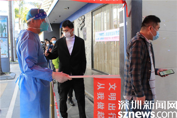 在2月份剛開始做義工的那幾天,深圳遭遇寒潮,他衣衫單薄,舉著粵核酸碼的牌子,手都凍僵了。但當(dāng)社工問他冷不冷,要不要回去添加衣服時(shí),他都說不冷。曾勇林不愿離開崗位,因?yàn)橛辛怂囊龑?dǎo)、維持,有他協(xié)助操作手機(jī),來檢測的居民就可以縮短檢測的時(shí)間,就不用挨冷受凍,其他志愿者就可以得到休息。曾勇林寧愿一個(gè)人凍著冷著,也要讓更多人受益。