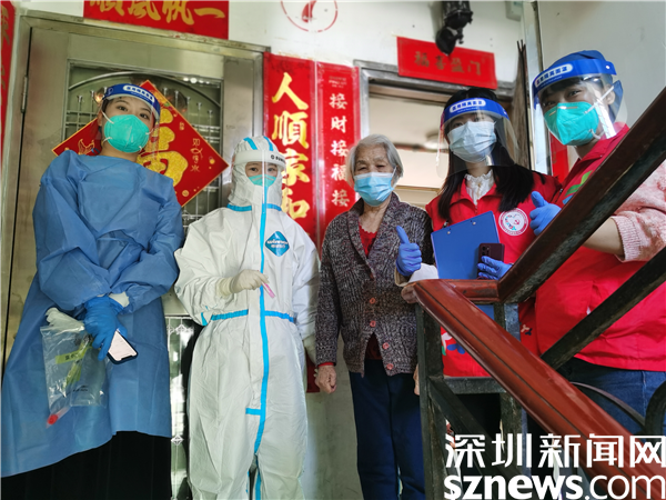 社工帶領(lǐng)醫(yī)護人員為高齡長者上門進行核酸檢測。