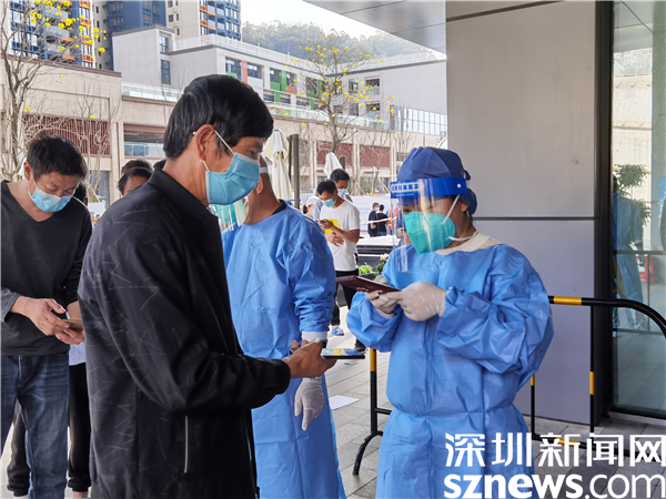 社工在核酸檢測點進行核酸檢測掃碼服務(wù)。