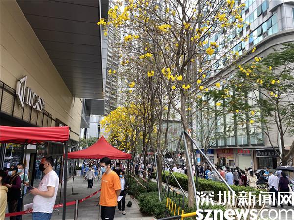 在國速中心廣場,黃花鈴木開得正好,藍(lán)天白云下是有序的核酸檢測隊伍,“大白”和“小藍(lán)”們正忙碌不停。據(jù)悉,這是桂園街道所屬的松園社區(qū)的一個核酸檢測點,地處于商業(yè)旺區(qū)附近,人口較多,所以核酸檢測隊伍也相對其他核酸檢測點長。羅湖區(qū)政協(xié)委員、深圳市國速房地產(chǎn)開發(fā)有限公司董事長黃少兵表示,這個核酸檢測點從1月初就設(shè)立了,“由于國速中心廣場較寬敞,滿足了通風(fēng)和人流需求?!?/p>