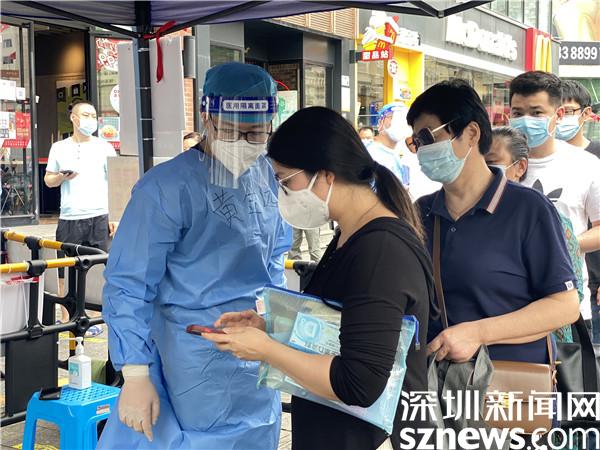 在東門茂業(yè)核酸檢測點,雖然附近的商場已暫停營業(yè),往日的熱鬧回歸了平靜,但在旁邊的核酸檢測點,志愿者們一遍又一遍不厭其煩地指引大家有序做好核酸檢測。