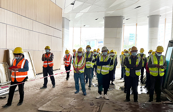 做好疫情防控,企業(yè)是重要陣地。丁振遠(yuǎn)表示,把防疫的政策送到工地上,也是為了督促工地建設(shè)負(fù)責(zé)人管理好自己的團(tuán)隊,在安全生產(chǎn)的過程中加強疫情防控,做到每一個環(huán)節(jié)落實到位,確保工地建設(shè)防疫生產(chǎn)“兩手抓兩不誤”。同時,他也叮囑,工地要嚴(yán)格落實防控措施,要做好人員管理和辦公場所的消殺工作,要繼續(xù)倡導(dǎo)全體員工做好自我防護(hù)。