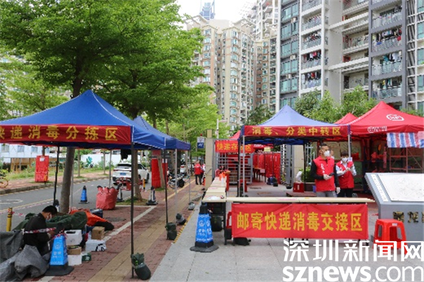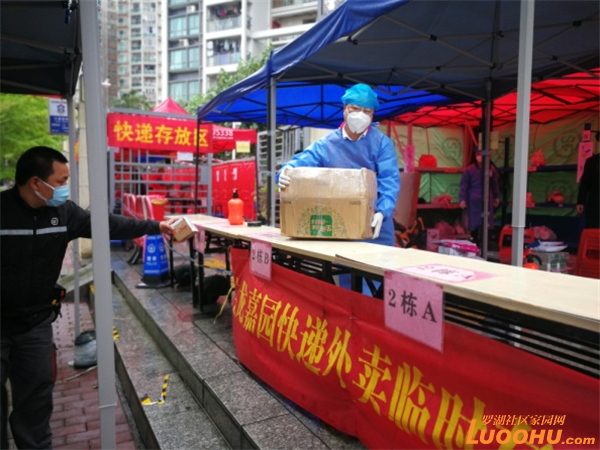 隨著快遞和線上訂菜數(shù)量增多,為了避免居民取快遞聚集以及與快遞員頻繁接觸,寶龍管理嘉園管理處決定在小區(qū)正門設(shè)立快遞外賣臨時存放點(diǎn),根據(jù)樓棟、物品類型等進(jìn)行分類,實行“無接觸”配送。存放點(diǎn)麻雀雖小,但五臟俱全:分別設(shè)有快遞消毒分揀區(qū)、郵寄快遞消毒交接區(qū)、消毒分類中轉(zhuǎn)區(qū)、快遞存放區(qū)、外賣(生鮮蔬菜快餐)存放區(qū)。