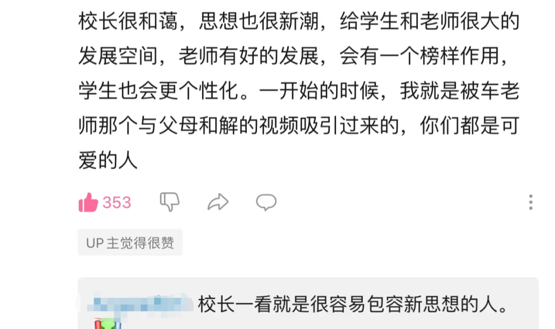 如今,許多學校老師也在做自媒體,黃潔表示,不反對老師們在完成本職工作的情況下,有一些興趣愛好和個人發(fā)展?!袄蠋焸冇凶约旱陌l(fā)展,然后把這些能力和資源再帶回到學校,給學生更多的滋養(yǎng)和熏陶,是一件很好的事?!贝嗽捯怀觯粌H“車棍兒老師”感動得直呼:“這就是校長的格局!”網(wǎng)友們也表示這就是別人家的校長啊!