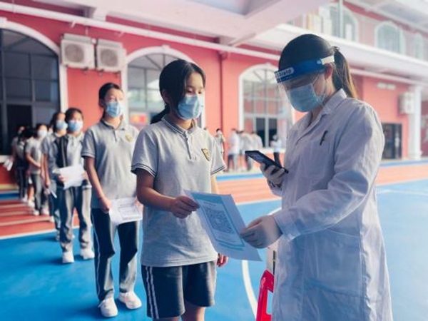 進(jìn)入闊別已久的校園,興奮和激動的心情溢于言表,提前兩天入校的初三年級學(xué)生做出了表率:用餐隊伍一米距,透明隔斷搭建的用餐區(qū)明亮又溫馨;課間時間在班主任的帶領(lǐng)下,大家排隊測核酸,安靜、有序的隊伍讓“大白”對學(xué)生點(diǎn)贊。少年已歸,向陽而生;不忘初心,逐夢而行。這個夏天,老師帶領(lǐng)著學(xué)生們一邊防疫,一邊學(xué)習(xí),合力同行,一起向未來!