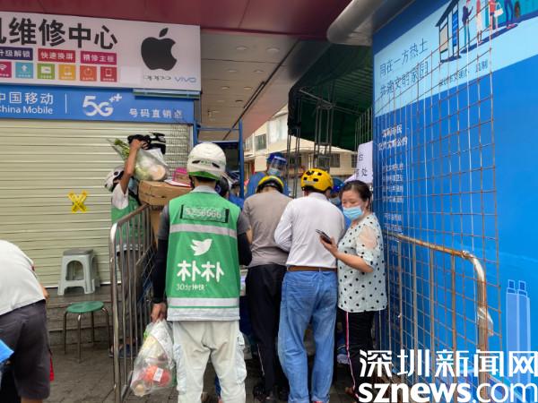在向西村外圍,工作人員認真值守,并引導每一個進入小區(qū)的市民進行掃碼、測溫、戴口罩?!鞍l(fā)現(xiàn)疑似病例之后,我們就迅速行動,進行整個街道的全員核酸采樣,對疑似病例的小區(qū)進行就地核酸、就地管控。我們立刻成立了配送、醫(yī)療、轉(zhuǎn)運小組等保障居民服務的工作小組,每個小組都有不同的部門在指導負責。像我們整個配送小組,投入了將近一百三十人,全面保障了我們整個封控、管控區(qū)居民的日常配送工作。這個貨架上面,目前來說已經(jīng)是非??焖俚厍謇硗炅?,居民的外賣這一類,我們優(yōu)先配送?!绷_湖區(qū)南湖街道物資配送組副組長鄺國斌說。