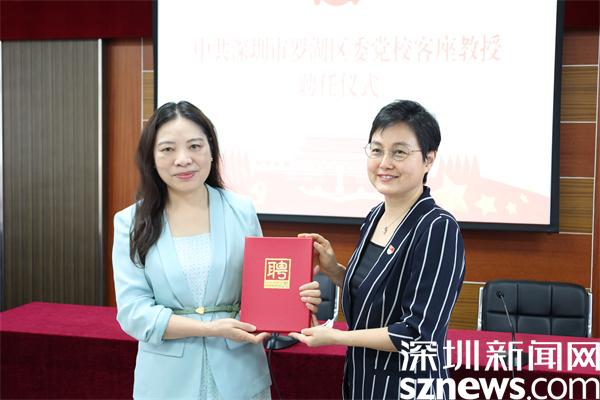 現(xiàn)場,劉亞峰還為中共深圳市委黨校嚴紅梅副教授頒發(fā)聘書,聘請其為羅湖區(qū)委黨??妥淌?。