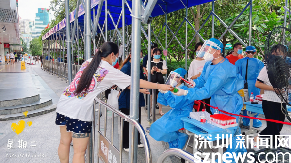 “疫情防控形勢嚴(yán)峻,現(xiàn)在天氣炎熱,看到一線工作人員在高溫下工作很辛苦。于是,我們根據(jù)實際需求,立即對接企業(yè)安裝移動核酸檢測站,并配備空調(diào),全力做好后勤保障工作?!蔽腻\社區(qū)黨群服務(wù)中心、社工主任呂明跟記者說,“在一線工作人員傾力開展各項工作的同時,做核酸檢測的市民也紛紛配合排隊,鮮有矛盾的發(fā)生,大家不約而同的默契,匯聚成暖流,讓核酸檢測既有防護力度、也有溫度?!?/p>