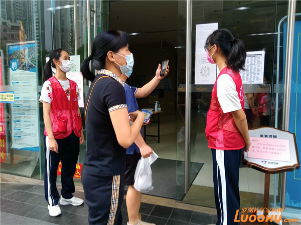 最先上陣的是一對父女兵:蔡玉堂和女兒蔡潤怡,他們利用周末時間在老圍花園E棟單元門值守。這是兩棟高層住宅,兩個單元的人都從這個門進出。只見父女倆一個指引進入的居民掃場所碼,一個提示測體溫、驗碼,倆人分工負責(zé),配合默契。他們都是老圍社區(qū)蔡屋圍村的居民,對自己的家園有著特殊的情感。今年12的蔡潤怡更是在這里出生長大,許多樓上樓下的鄰居都認(rèn)識她,看她做義工,都親熱地跟她打招呼,并主動配合查驗。雖然出入人員較多,但有了父女倆的值守,卡口井然有序。