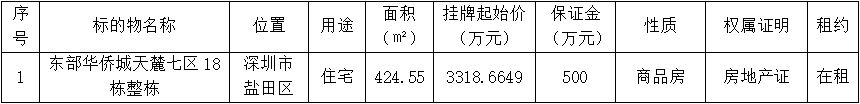 深圳報業(yè)集團委托深圳聯(lián)合產(chǎn)權交易所對深圳市鹽田區(qū)東部華僑城天麓七區(qū)18棟整棟房產(chǎn)進行公開掛牌交易,深圳聯(lián)合產(chǎn)權交易所現(xiàn)已公開披露以下產(chǎn)權轉讓信息,廣泛征集受讓方。請有意者到深圳聯(lián)合產(chǎn)權交易所辦理受讓登記手續(xù)。