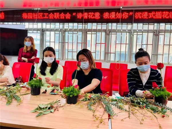 10月19日、21日,深圳市羅湖區(qū)清水河街道梅園社區(qū)工會(huì)聯(lián)合會(huì)、梅園社區(qū)婦聯(lián)、深圳市東西方社工服務(wù)社駐梅園社區(qū)黨群服務(wù)中心的社工聯(lián)合開展了兩場“詩情花意 浪漫如你”沉浸式插花活動(dòng)。
