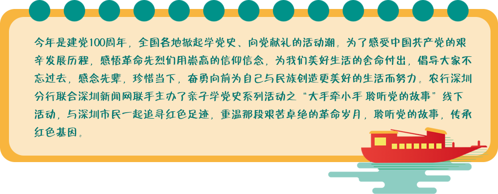 今年是建黨100周年,全國(guó)各地掀起學(xué)黨史、向黨獻(xiàn)禮的活動(dòng)潮。4月18日,乘著第一縷陽(yáng)光,由農(nóng)行深圳分行聯(lián)合深圳新聞網(wǎng)主辦的“大手牽小手聆聽(tīng)黨的故事”親子學(xué)黨史活動(dòng)正式拉開(kāi)帷幕。來(lái)自深圳市的20余組家庭,重走“東江縱隊(duì)北撤”路,追尋紅色足跡,重溫那段艱苦卓絕的革命歲月,聆聽(tīng)黨的故事,傳承紅色基因。[詳細(xì)]