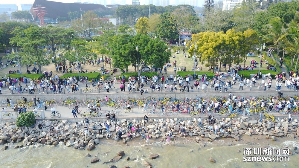 鵬城眼|深圳人假日勤動腳 共享單車“擠爆”深圳灣
