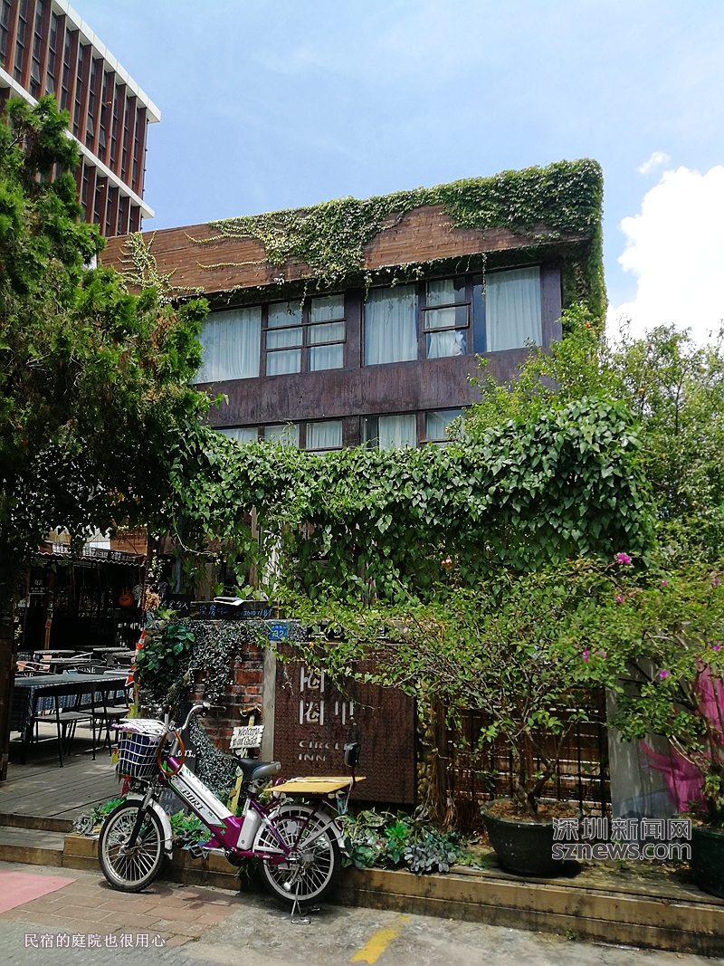 有新聞報(bào)道記載了較場(chǎng)尾民宿蓬勃興起的時(shí)間點(diǎn),即2011年大運(yùn)會(huì)籌備階段,政府部門劃撥了一筆專項(xiàng)資金,用以完善較場(chǎng)尾村的一些基礎(chǔ)設(shè)施。從村落里破舊路面的修補(bǔ),到街道的指引路牌,以及夜間照明的復(fù)古油燈,規(guī)劃里面都做了相應(yīng)安排。這也使得開民宿客棧的風(fēng)氣開始在較場(chǎng)尾蔓延開來(lái)。