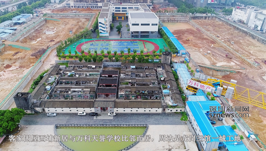 老圍屋的旁邊,高樓大廈林立。其中就有龍崗的新地標萬科廣場,兩種截然不同的建筑風格,因緣際會般“聚”在了一起。