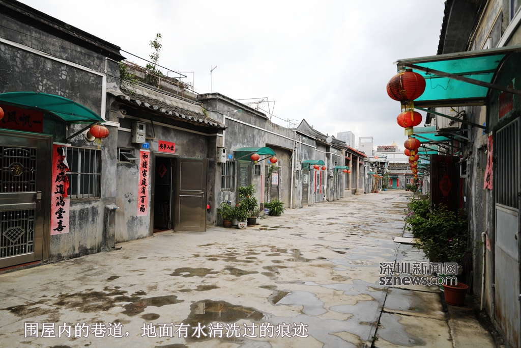 2017年8月的一天,深圳新聞網(wǎng)記者探訪(fǎng)西埔新居,在龍崗“三館一城(公共藝術(shù)館、科技館、青少年宮、圖書(shū)館)”的工地包圍中,我們從萬(wàn)科天譽(yù)學(xué)校的側(cè)門(mén),走過(guò)一段小路,終于看到一半月形的池塘,找到了西埔新居。一位老奶奶正在西埔新居前的空地散步,她指給我們進(jìn)入新居的入口,正門(mén)兩側(cè)的對(duì)聯(lián)“堯天舜日,甘雨和風(fēng)”頗具古風(fēng),又有天下情懷。