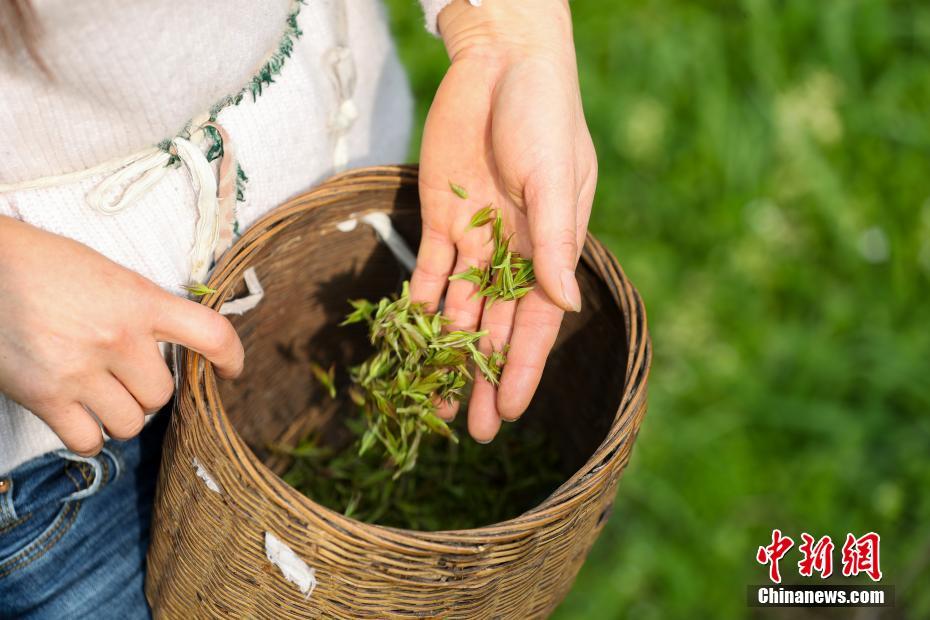 3月1日,春景村茶農(nóng)康敏在采摘春茶,她沒有外出打工,而是選擇管理自己種植的十多畝苦丁茶園。小葉苦丁茶是貴州省余慶縣特色支柱產(chǎn)業(yè),被譽為“中國小葉苦丁茶之鄉(xiāng)”,2017年全縣苦丁茶種植面積4.2萬畝,產(chǎn)量1260噸,年產(chǎn)值1.13億元。小葉苦丁茶葉種植已逐漸成為余慶縣農(nóng)民增收的一個有效途徑,成為余慶縣脫貧攻堅的產(chǎn)業(yè)之一。中新社記者賀俊怡 攝