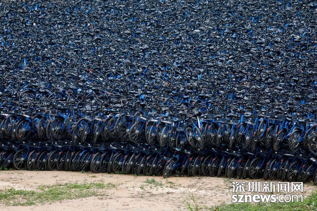 圖為深圳市場(chǎng)投放的小藍(lán)單車(chē)目前都集中存放在龍崗區(qū)某處