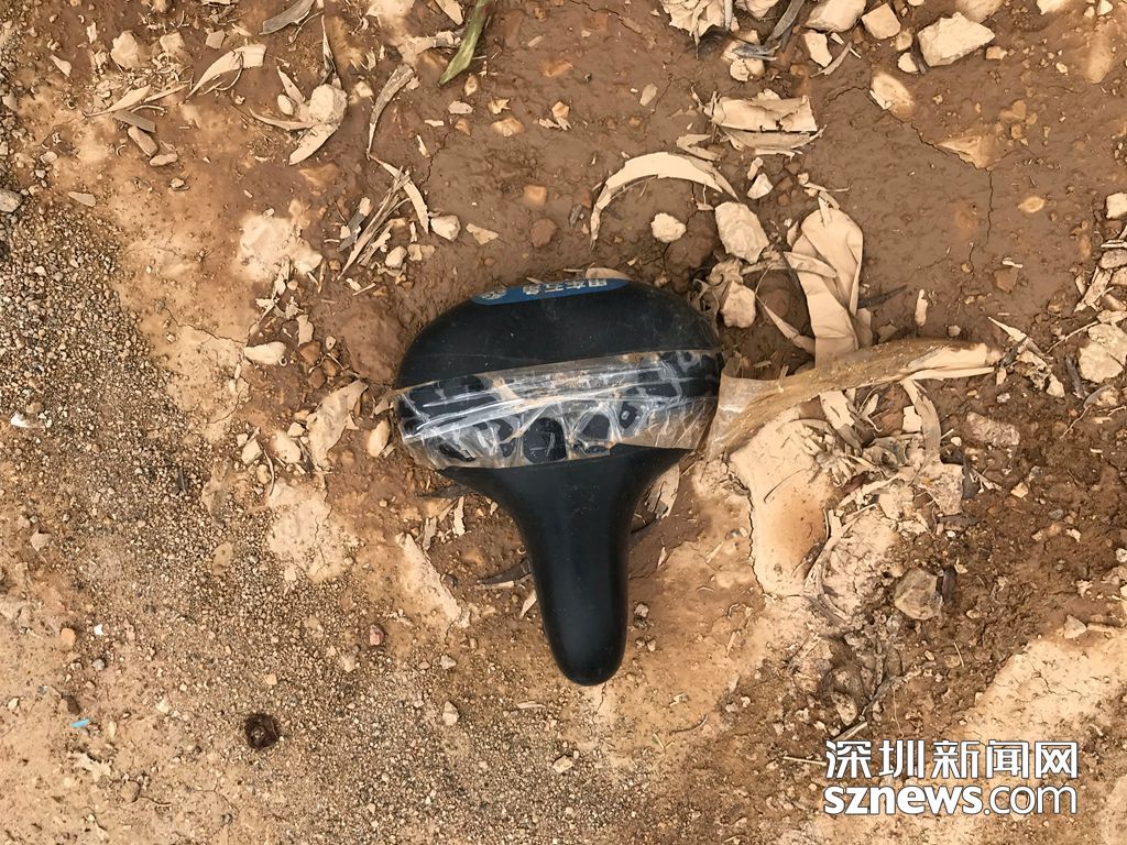 圖為小藍(lán)單車(chē)存放處有一個(gè)座椅掉落在地上