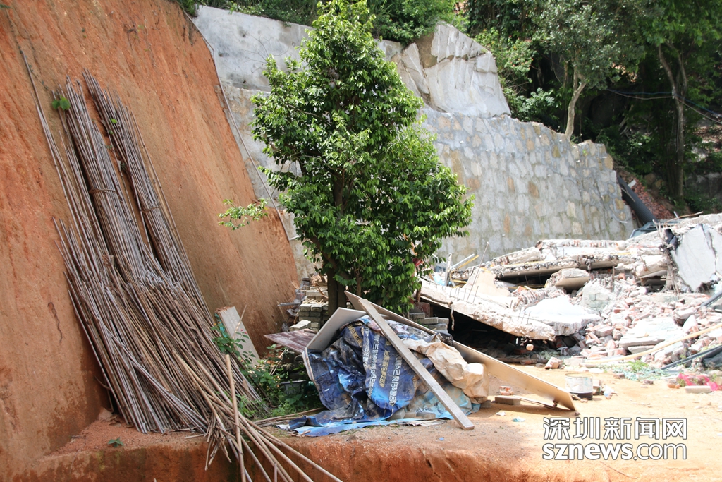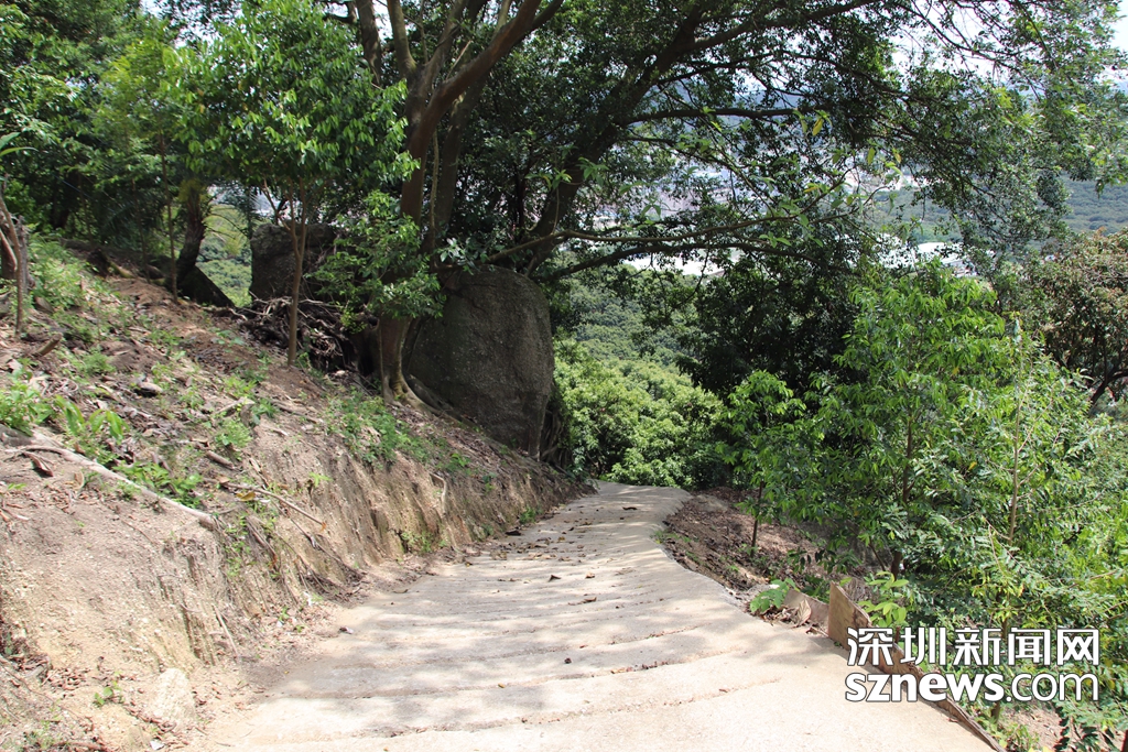深圳新聞網(wǎng)記者抵達(dá)羊臺山第一處違法建筑地點(西麗麻磡村奇星路風(fēng)門凹山腰靠山底一側(cè))