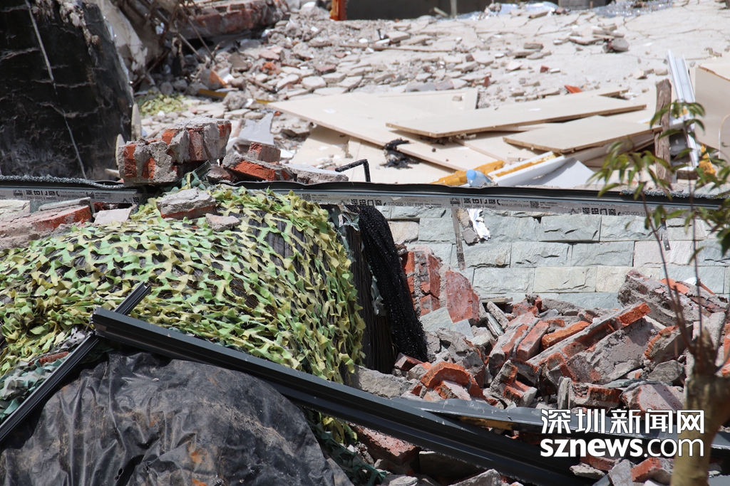 深圳新聞網(wǎng)記者正在操作無人機(jī)對羊臺山兩棟拆除后的違法建筑廢墟進(jìn)行拍攝