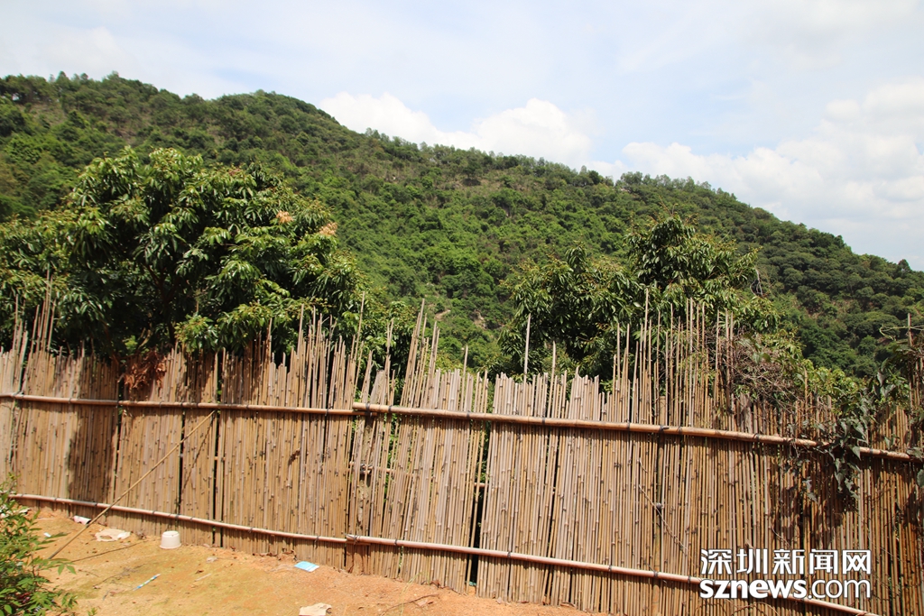 5月16日,深圳新聞網(wǎng)記者爬上羊臺山,用無人機(jī)和相機(jī)拍下羊臺山毀林案件涉案的兩棟違法建筑拆除后的情景。記者從羊臺山隱蔽的一處登山,山路崎嶇且陡峭,沿路都是荔枝林,多頭大型犬見到陌生人狂吠不已。耗時三四十分鐘登臨山腰,可俯瞰西麗水庫,視野極佳。