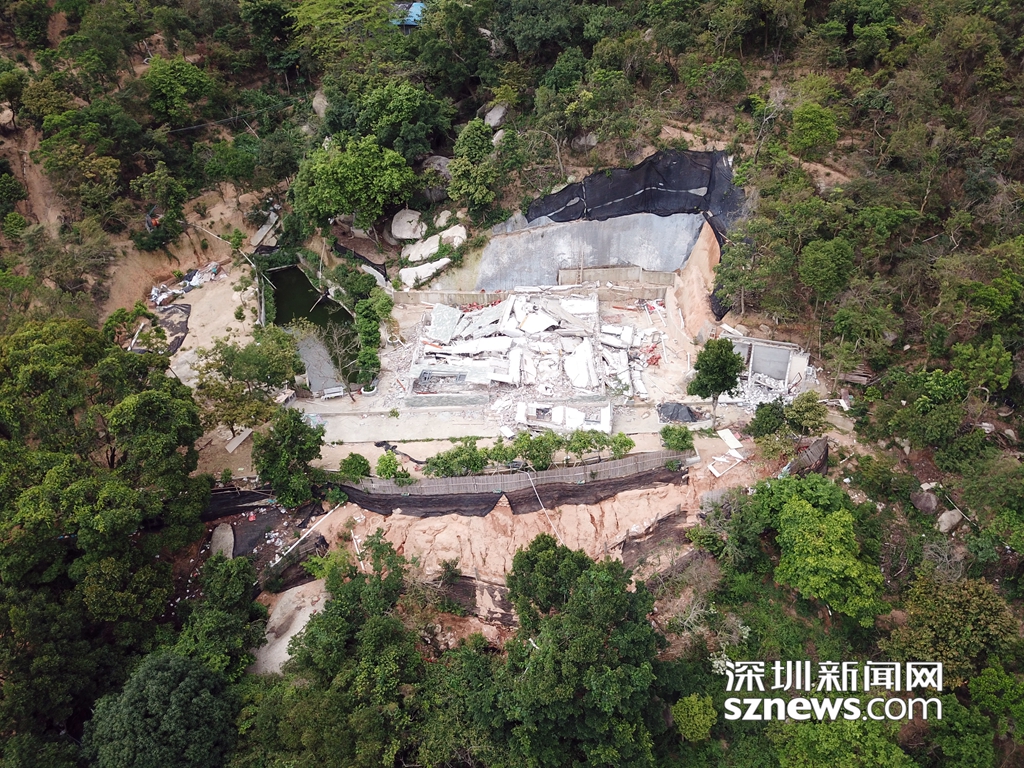 深圳新聞網(wǎng)無人機(jī)從高空拍下羊臺山兩處被拆除違法建筑
