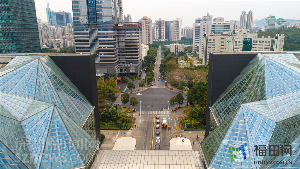 市民中心正面是市民廣場(chǎng),再往前即是深南大道和中央商務(wù)區(qū)。