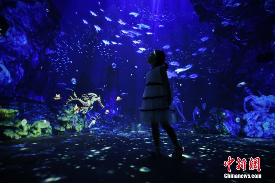 7月5日,民眾欣賞“尋夢(mèng)海底兩萬(wàn)里深海之光”沉浸式藝術(shù)展。當(dāng)日,該展在北京嘉德藝術(shù)中心開(kāi)幕。展覽是以“深海之光”為主題的海底光影沉浸式藝術(shù)展,創(chuàng)意藝術(shù)團(tuán)隊(duì)利用數(shù)字技術(shù)和水打造出一個(gè)能夠感受到“生命”的深海世界。中新社記者楊可佳 攝