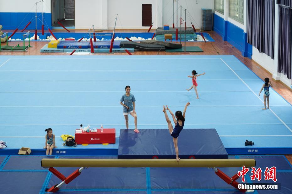 7月16日,貴州榕江,小學員在訓練中。位于月亮山深處的貴州省黔東南苗族侗族自治州榕江縣,數十年來堅持少年兒童體操培養(yǎng)、訓練,對于全縣有良好身體條件的少年兒童進行免費集中培訓。目前該縣每年有60余名兒童在業(yè)余體操運動學校進行訓練。炎炎夏日,孩子們不懼酷暑,刻苦訓練追尋著自己的“體操夢”。據了解,自1972年以來,榕江縣先后向貴州省體操隊、蹦床隊輸送了21名運動員;其中有6名運動員進入國家體操隊,10名運動員榮獲“國家健將級運動員”稱號,5名運動員榮獲“國際健將級運動員”稱號,其中體操名將劉榕冰是2014年體操世錦賽男團冠軍成員之一。2004年,榕江縣被貴州省體育局授予“貴州體操之鄉(xiāng)”稱號。中新社記者賀俊怡 攝