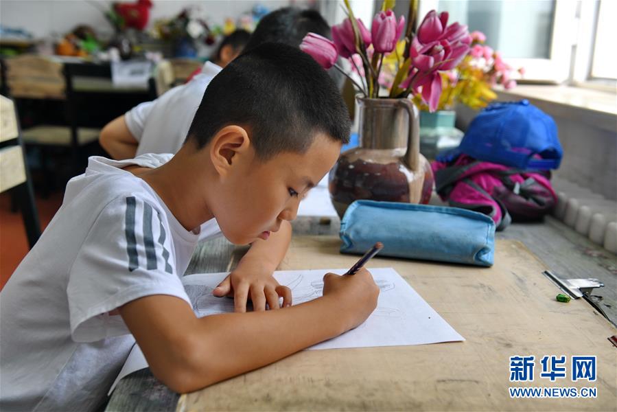 7月16日,在長春市少年宮,學(xué)生在進行繪畫練習(xí)。