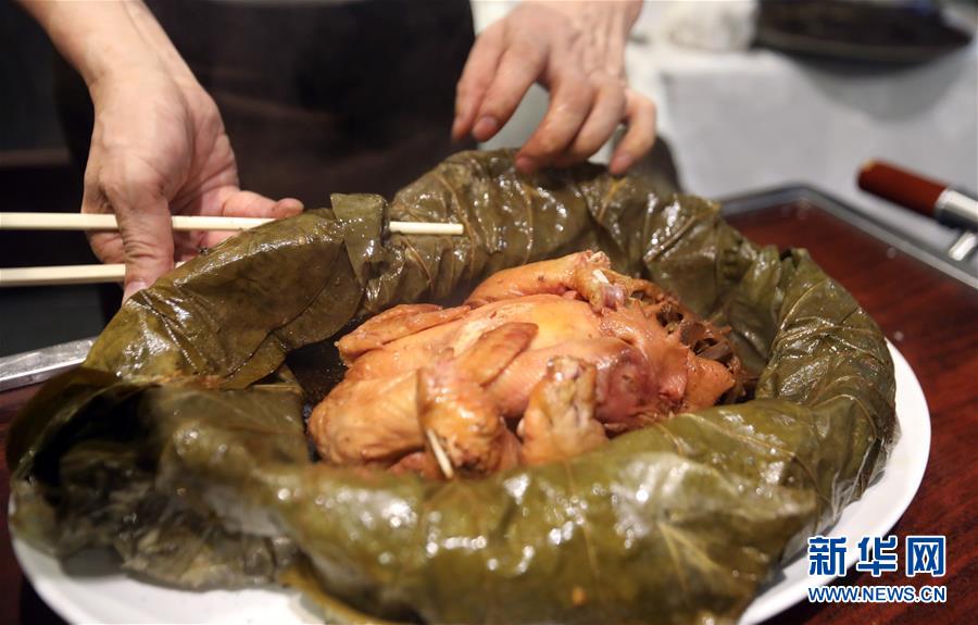 這是在香港灣仔杭州酒家拍攝的“叫化雞”(6月16日攝)。 金庸在武俠小說《神雕俠侶》中借郭靖之口說過: “為國為民,俠之大者?!蔽鋫b精神在香港備受推崇,有其心向中華文化的情感基礎(chǔ)。在這個國際美食之都,品味舌尖上的武俠味,內(nèi)中的感覺別有深意。新華社記者 李鵬 攝