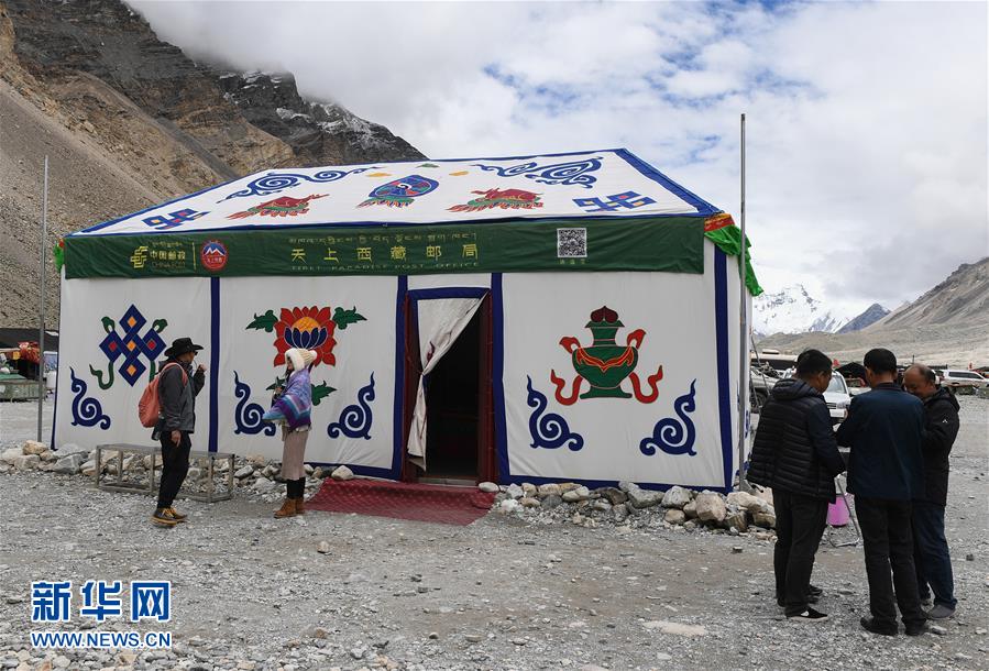 這是位于海拔5200米的珠峰大本營(yíng)的天上西藏郵局外景(7月24日攝)。